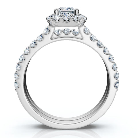 1 1/10 Ct Lab Grown Diamond Cushion Halo Engagement Wedding Ring Set White Gold