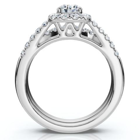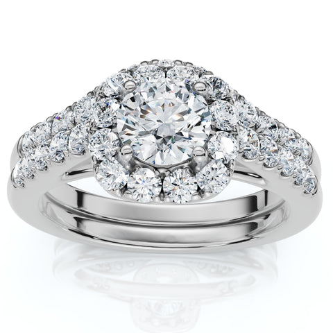 1 1/10 Ct Lab Grown Diamond Cushion Halo Engagement Wedding Ring Set White Gold