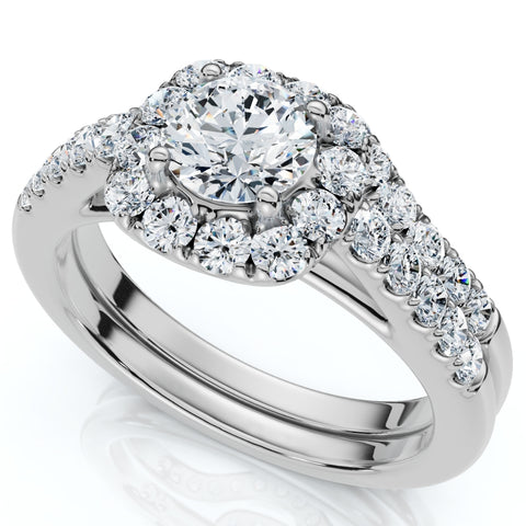 1 1/10Ct Cushion Halo Diamond Engagement Ring & Matching Band Gold/Pt Lab Grown