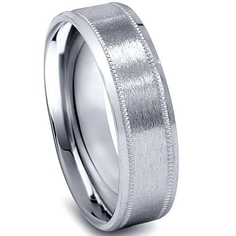 10K White Gold Mens 6mm Brushed Comfort Fit Wedding Band