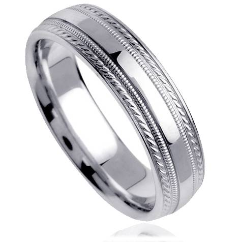 6mm Mens Wedding Band 10K White Gold