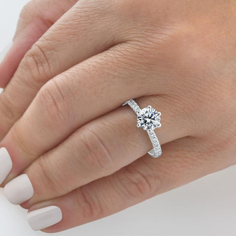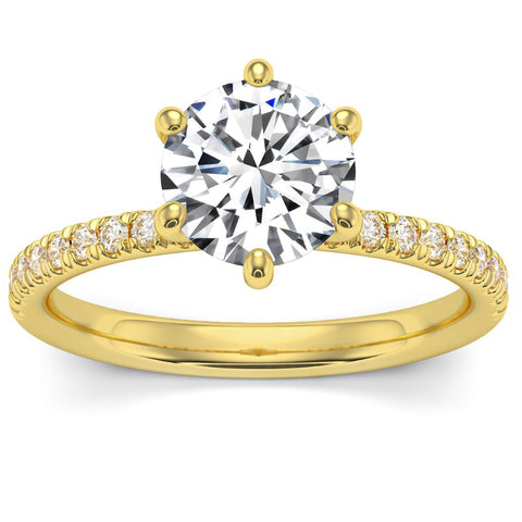 2Ct Round Cut Moissanite & Diamond Ring in 14k Gold With Side Halo