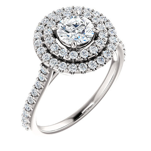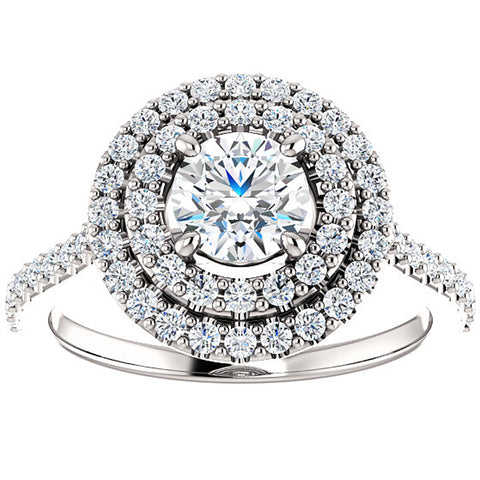 1 Ct Diamond EX3 Lab Grown Double Halo Engagement Ring 10k White Gold