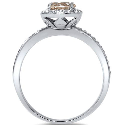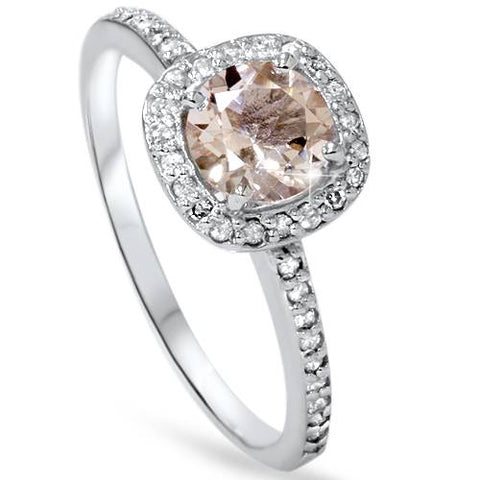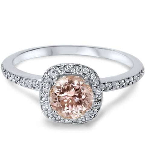 7/8ct Round Morganite & Diamond Cushion Halo Engagement Ring 14K White Gold