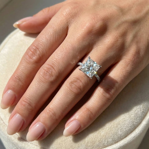 Certified 4 1/3Ct Princess Cut Hidden Halo Engagement Ring 14k Gold/Pt Lab Grown