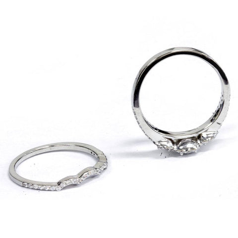 1.00CT 3-Stone Diamond Engagement Wedding Ring Set 10K White Gold