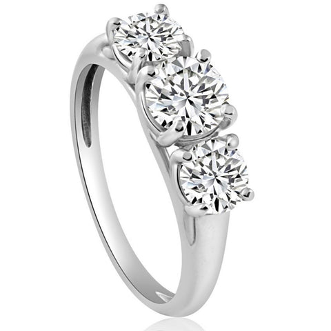 1 3/4 Ct Three Stone Diamond Engagement Ring 10K White Gold Lab Grown