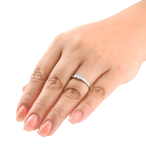 3/4ct Three Stone Round Diamond Engagement Ring 14K White Gold
