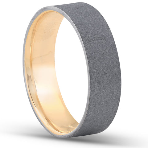 14k Yellow & Black Gold Mens Satin Finish Flat Comfort Fit Wedding Band