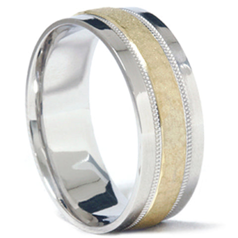Mens 14k White and Yellow Gold Two Tone Wedding Ring