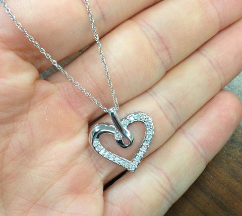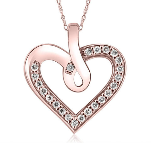 1/4Ct Diamond Curve Heart Shape Pendant Necklace in White, Yellow, or Rose Gold
