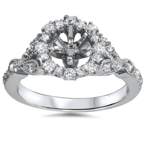 3/8ct Vintage Halo Diamond Engagement Setting 14k White Gold Semi Mount