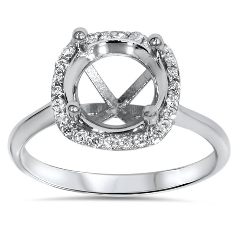 Cushion Halo Diamond Engagement Ring Setting 14K White Gold