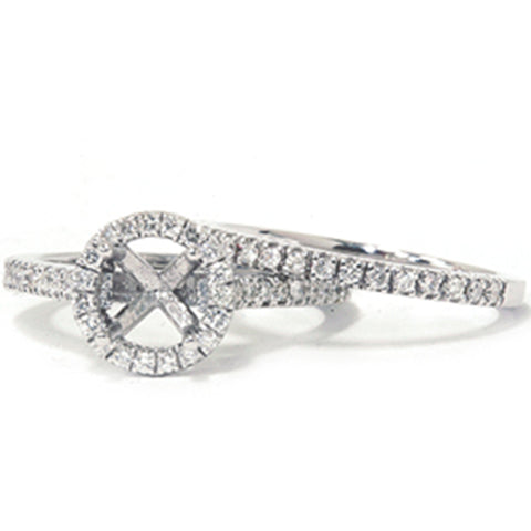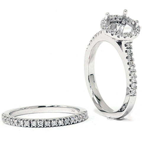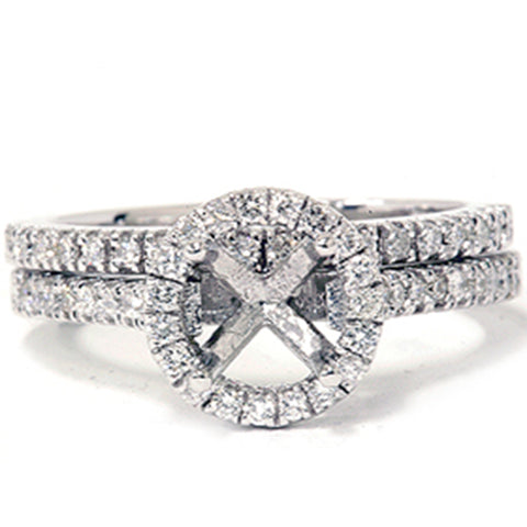 1/2ct Halo Diamond Engagement Wedding Ring Set 14K White Gold