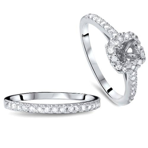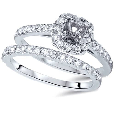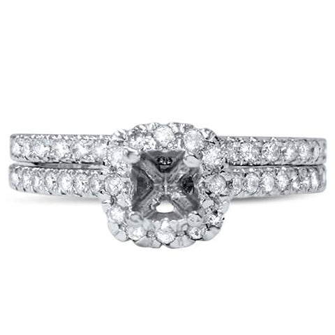 3/4ct Cushion Halo Engagement Ring Setting & Band 14K White Gold