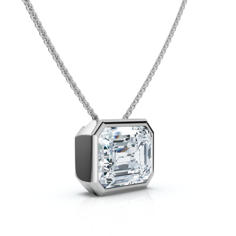 2Ct Solitaire Bezel Emerald Diamond East West Pendant 14k Gold Necklace Lab Grown