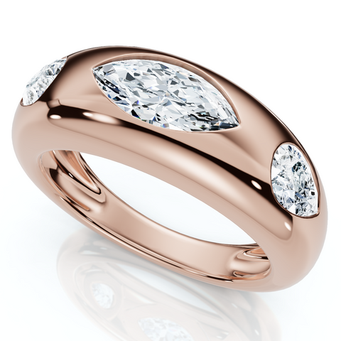 1 1/10Ct Sloan Flush Set Marquise Diamond Dome Band 14k Gold Lab Grown