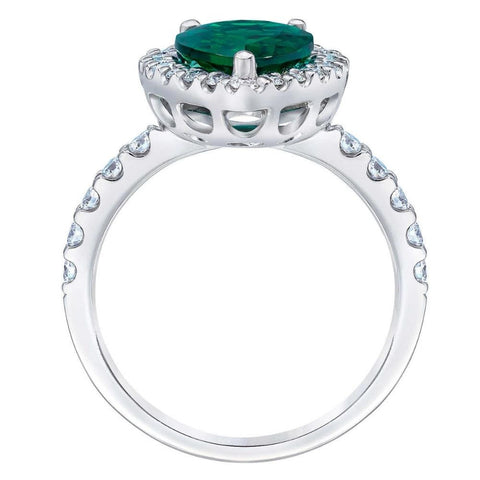 5Ct Pear Shape Emerald & Lab Grown Diamond Halo Ring in 10k White Gold