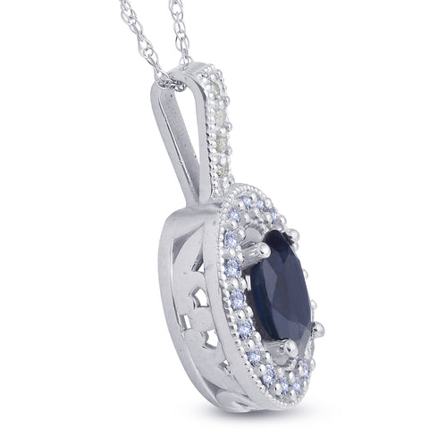 Oval Blue Sapphire Diamond Solitaire Pendant 14K White Gold