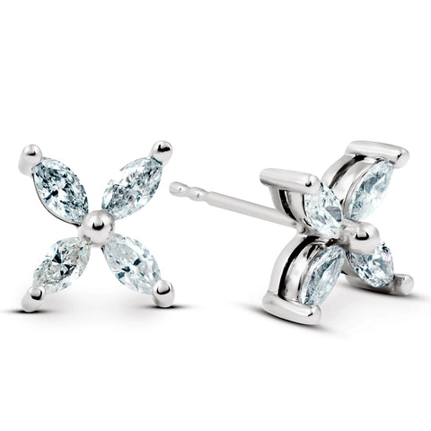 5/8ct Diamond Eight-Stone Marquise Studs 14K White Gold Womens Earrings
