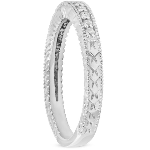 1/5ct Diamond Vintage Womens Wedding Ring Stackable 14k White Gold Band