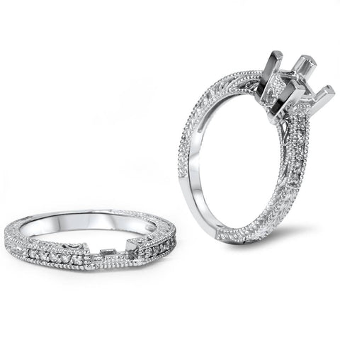 1/2ct Antique Halo Diamond Engagement Ring Setting 14K White Gold