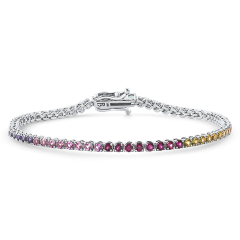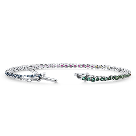 14k White Gold Ombre Round Cut Rainbow Women's Tennis Bracelet 7"
