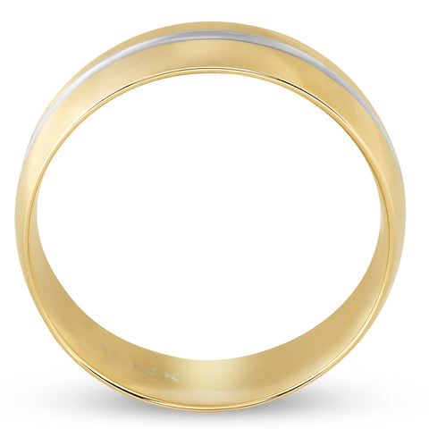 14K Gold Two Tone Flat Wedding Band 6mm Brushed White & Yellow Mens RIng