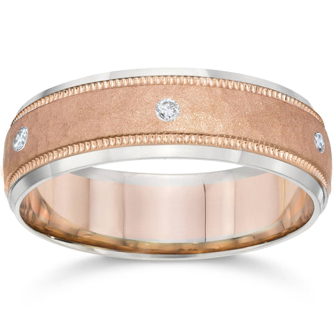 Mens Diamond 14K Rose & White Gold Hammered Two Tone Wedding Band
