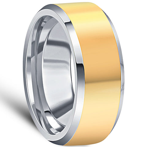Men's Polished Tungsten & Gold Plated Two Tone 8mm Ring Wedding Band