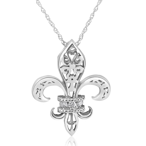 1/10ct Vintage Fleur De Lis Pendant 14K White Gold 1" Tall