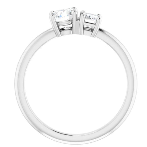 1Ct Two Stone Moissanite Emerald Round Engagement Ring White Yellow or Rose Gold
