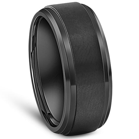 Black Titanium Mens Comfort Fit Brushed Beveled Polished Edge Wedding Band 9MM