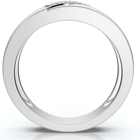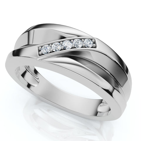 Mens High Polished White Gold Diamond Anniversary Ring
