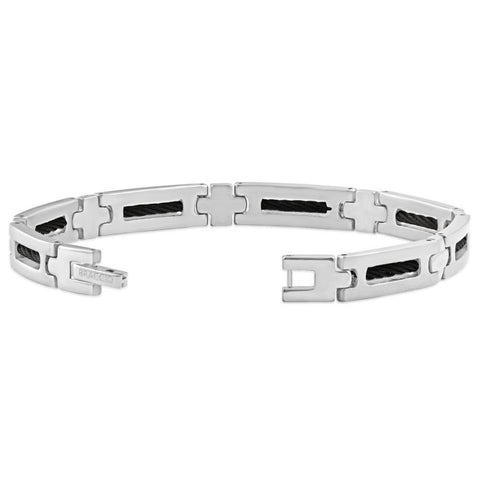 Men's Steel And Black Wired 8mm Flexible Link 8.5 " Bracelet
