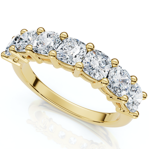 1 3/8Ct Cushion Cut Seven Stone Wedding Ring 14k Gold Lab Grown
