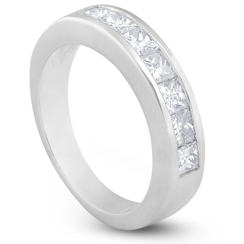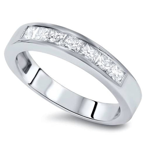 1 Ct Princess Cut Channel Set Diamond Wedding Ring 14K White Gold