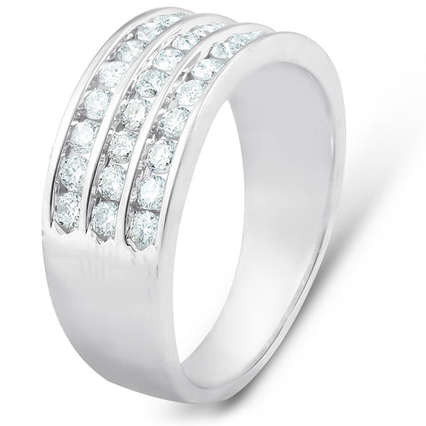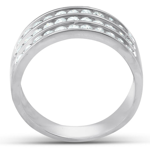 1 Ct TDW Three Row Channel Set Diamond Wedding Ring 10k White Gold Band