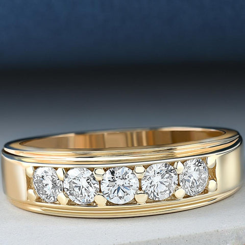 1 Ct Diamond Ring Mens High Polished 14k Yellow Gold Wedding Anniversary Band