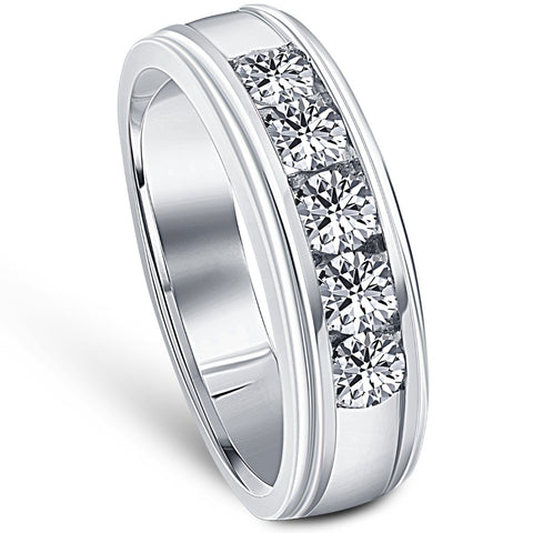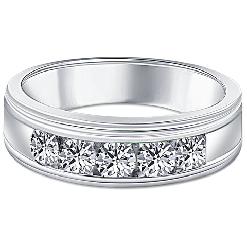 1 Ct Mens Diamond 5-Stone Wedding Ring Channel Set Classic Ring 10k White Gold