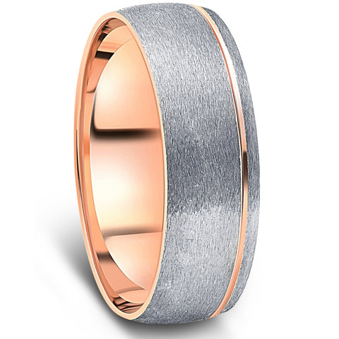 14k Rose & Black Gold 7MM Flat Comfort Fit Mens Brushed Wedding Band