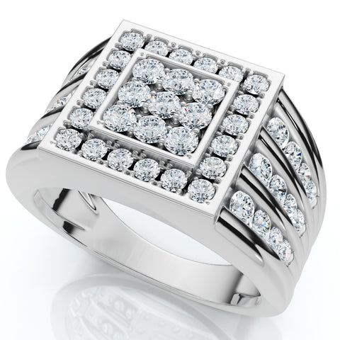 1Ct TW Diamond Men's Anniversary Wedding Ring High Polished Band 10k White Gold