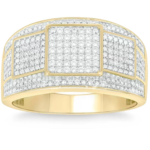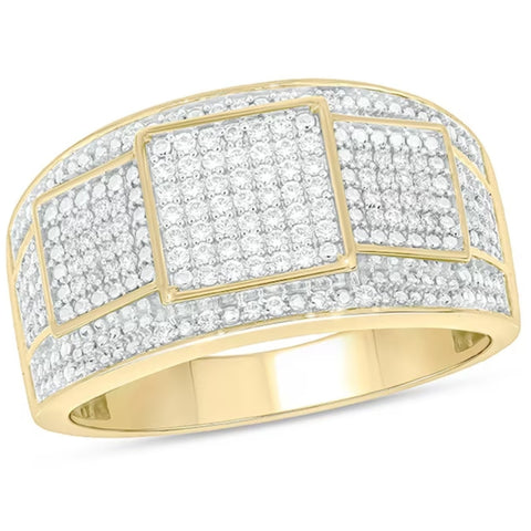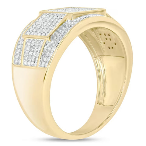 1Ct TW Diamond Men's Ring 10k Yellow Gold 12mm Wide