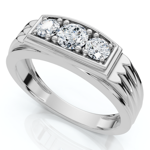 3/4Ct Men's 3 Stone Diamond Wedding Anniversary Ring in 14k Gold Lab Grown