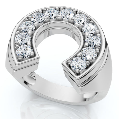 3/4 Ct Men's Diamond Horseshoe Lucky Pinkie Ring 10k White Gold Fashion