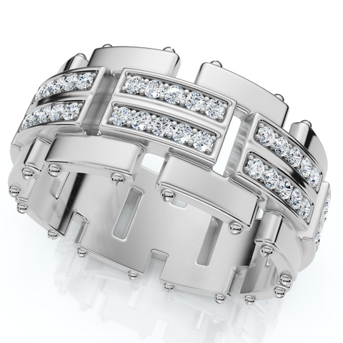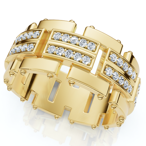 3/4Ct Men's Round Cut Diamond 10MM Wide Ring Wedding Band 10k Gold Lab Grown