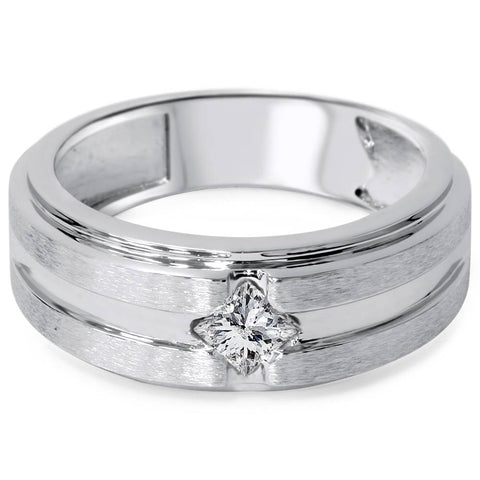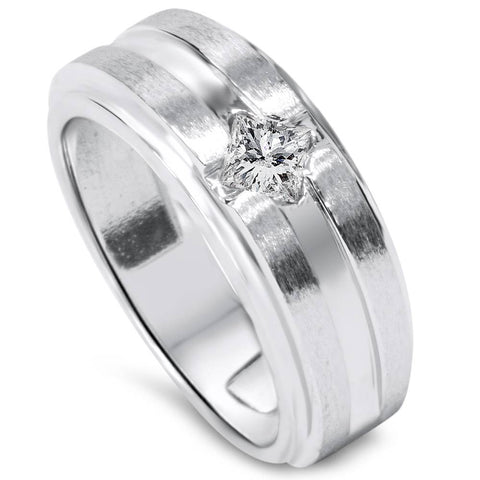 3/8ct Mens Princess Cut Diamond Wedding Ring 14K White Gold