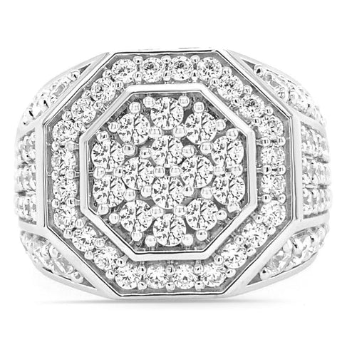 3Ct Men's Diamond Hexagon Cluster Ring 10k White Gold