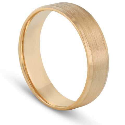 6MM Flat Beveled Edge Mens Wedding Band 10k Yellow Rose White Gold or Platinum