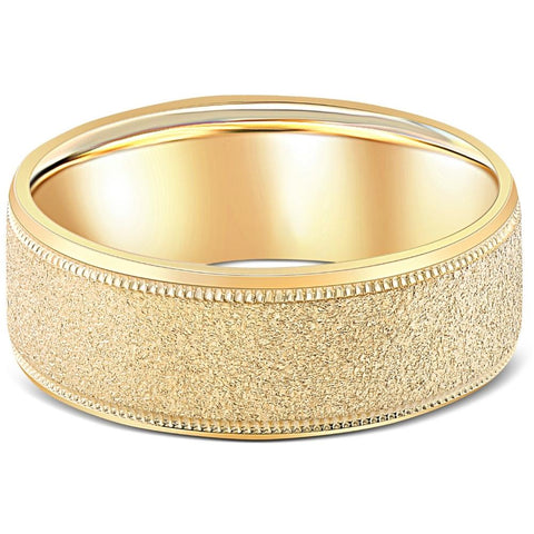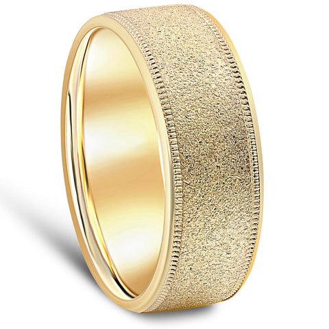 Mens Brushed Wedding Band Solid 10K Yellow Gold Ring 8mm Wide